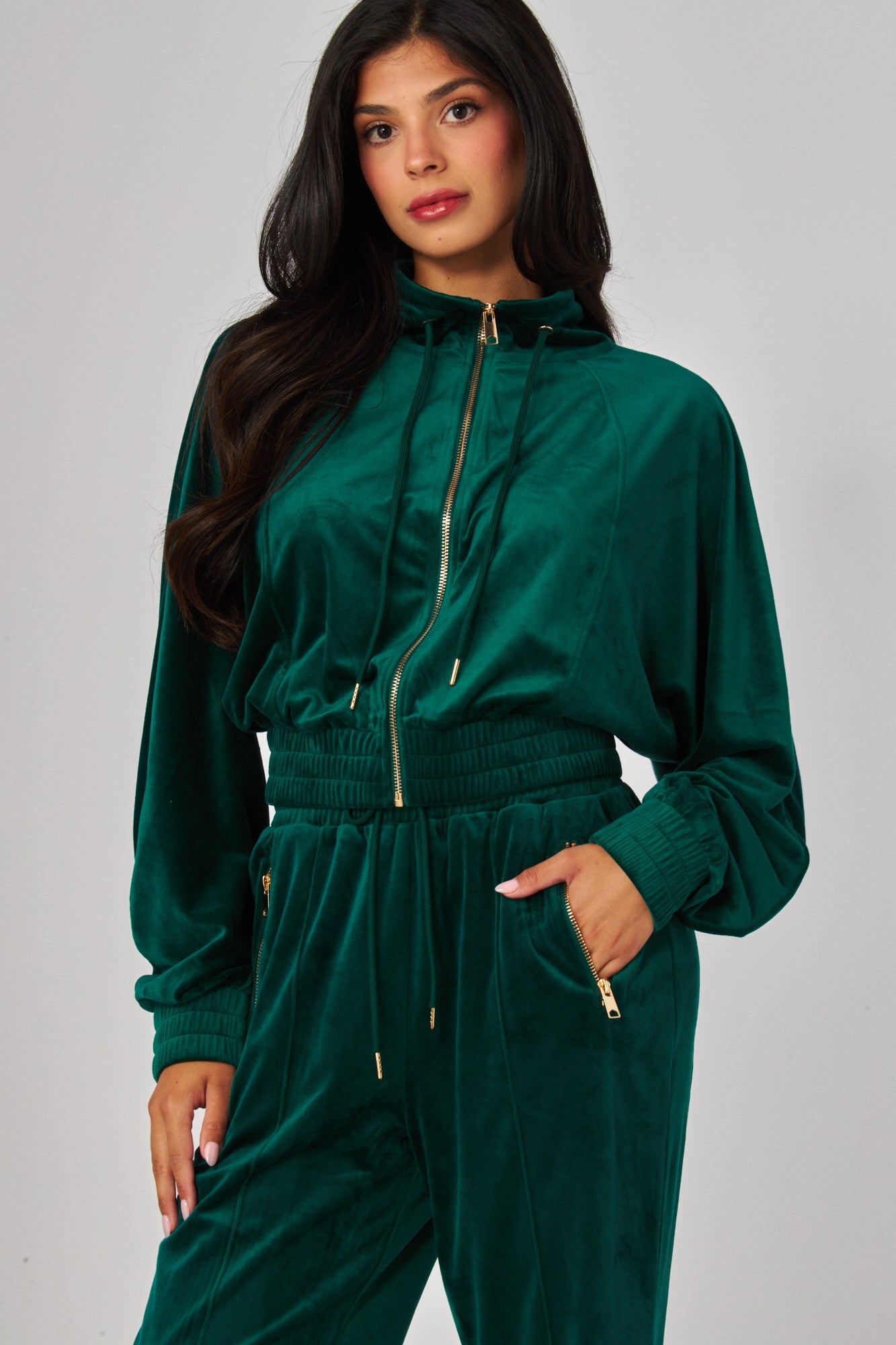 This super cute and comfy velour jogger set is sure to stand out in a vibrant red scarlet or