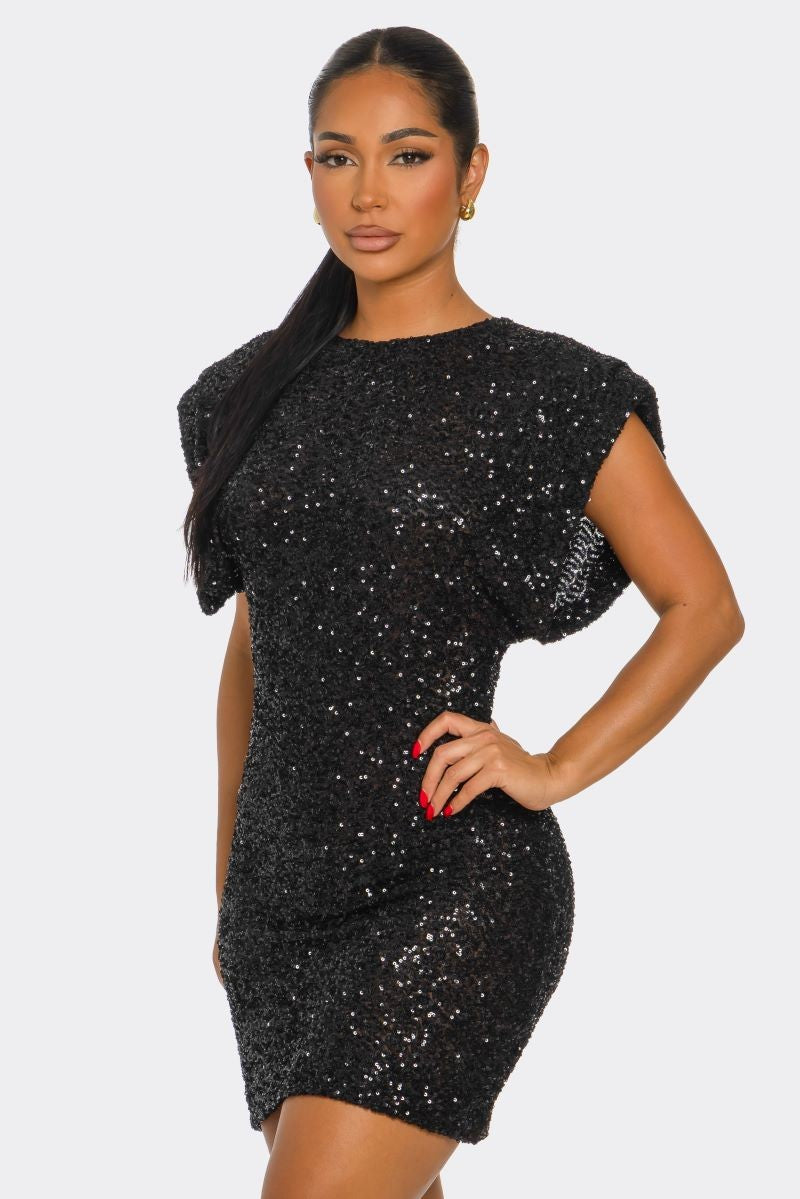 MIDNIGHT SPARKLE SEQUIN MINI DRESS